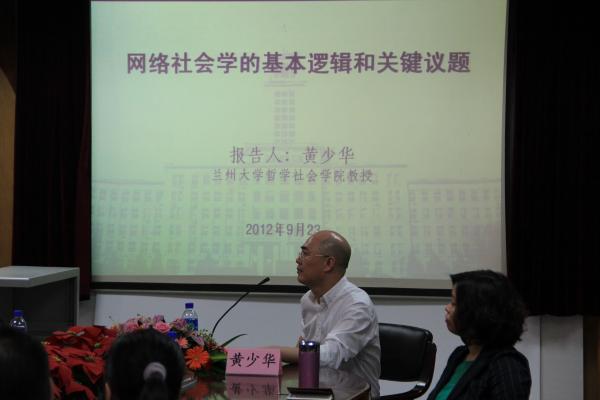 黄少华教授的讲座为“网络社会学的基本逻辑和关键议题”。黄教授指出,互联网已经成为引发和解释中国社会结构转型的关键变量。关于网络社会的实质及对人们日常生活的影响,存在三种基本的解释路径:以媒介特征分析为中心、以网络技术与社会互动分析为中心和以虚拟与现实关系分析为中心。黄教授讲到网络社会的基本逻辑时,将网络视为一个全新的社会变量,认为其已经并将继续改变人们生活于其中的社会语境,重塑种种基本的社会力量,导致一种全新的跨越各种原有社会边界的新行为逻辑的凸显,进一步形塑着以二元交织为基本特征的社会结构。黄教授重点从网络社会行动及其对社会结构的形塑、网络社会的结构性风险及由此凸显的新社会问题、网络生活世界与现实生活世界的交织渗透、网络使用者的社会意识与社会认同、网络社会学的核心概念的结构与测量等五大方面,阐释了网络社会学的关键议题。讲座后期的答疑阶段,同学们对网络社会学的相关议题表现出极强的兴趣,纷纷提问与黄教授互动。