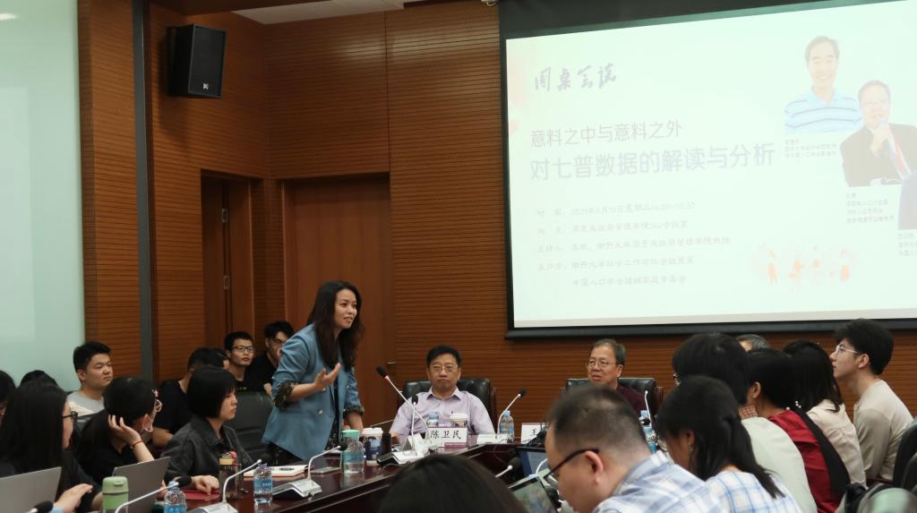 会谈全程讨论热烈,现场思维碰撞活跃。三位专家学者从严谨的专业视角出发,以扎实的学科基础和理论功底,回应了提问和争议,对同学们如何客观科学地对七普数据进行解读,如何避免网络中一些基本概念的混淆、因统计口径不同产生的存疑等问题进行了认真解答。