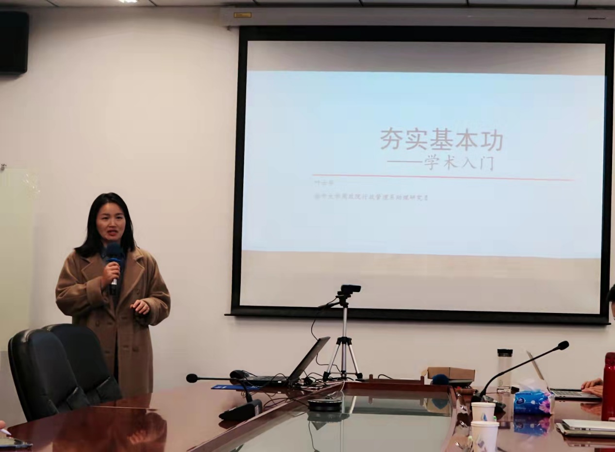 叶士华老师以《夯实基本功——学术入门》为题,从文献查阅与英文论文写作两个方面分享了她的个人心得。在文献查阅方面,她认为应当在范围广、读经典、穷尽性、常更新等四方面下功夫,并提出通过“找准关键词”、“跟踪与识别”、“归类与筛选”等方法实现对经典文献与最新研究的全面覆盖以及对研究内容与措辞表达的学习借鉴。在英文论文写作方面,叶士华老师就文章各个部分的写作要领进行了详尽的阐述,并对写作与投稿中的一些注意事项进行了分享,尤其强调了尊重审稿人意见,认真修改论文的重要性。