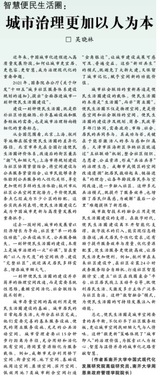总之,便民生活圈是城市空间要素的再平衡,不仅补齐了社区服务短板,更让城市空间找回烟火气与人情味。这种“微更新”策略体现了“城市即人”的治理价值,为探索以人为核心、智慧与温情并存的城市化之路贡献智慧。