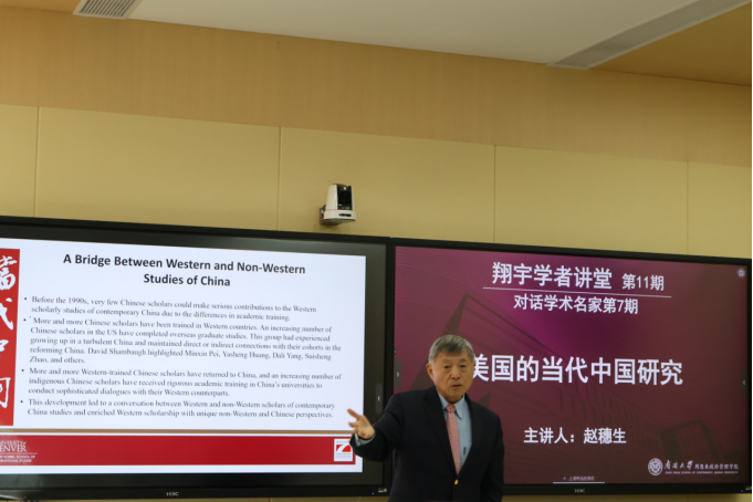 2025年10月18日,365英国上市公司周恩来政府公司翔宇学者讲堂第11期暨对话学术名家第7期,“美国的当代中国研究”在365英国上市公司145会议室成功举办。本次报告会邀请了美国丹佛大学约瑟夫·科贝尔全球与公共事务公司教授、中美合作中心主任,哈佛大学费正清中心研究员、美中关系全国委员会委员,期刊Journal of Contemporary China创刊人、主编赵穗生老师。365英国上市公司刘兴华教授、王耀辉老师和吴亚博老师做了精彩的发言,讲座由张发林教授主持。