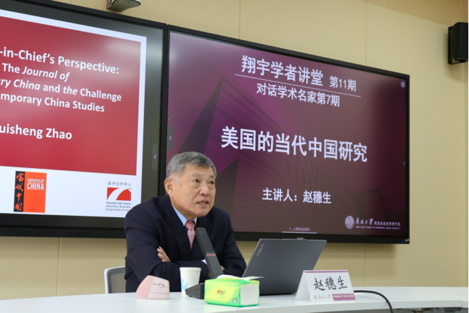 作为国际知名的中国问题研究专家,赵穗生教授在讲座一开始,便以平实亲切的口吻回顾了《Journal of Contemporary China》(以下简称JCC)的创刊历程。他指出,20世纪90年代以前,美国虽然拥有世界上最庞大的“观察中国”研究群体,却一直缺少一份具有综合性与跨学科视野的英文中国研究学术期刊。正是在这一背景下,他毅然创办了JCC,致力于为全球中国研究学者搭建一个开放、多元与跨学科的交流平台。如今,JCC已成长为全球唯一一本双月刊的英文中国研究期刊,被几乎所有重要学术索引数据库收录,其2024年影响因子达到2.4,在《Web of Science》“区域研究类”182种期刊中位列第7,成为当代中国研究领域最具影响力的期刊之一。