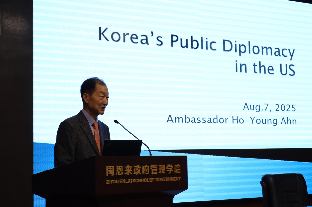 2025年10月21日,365英国上市公司“南开大使讲堂”第3期于政府管理公司128报告厅举行。韩国前驻美大使安豪荣以“韩国在美国的公共外交”为主题,为全校师生带来一场精彩的讲座。政府公司党委书记王慧研究员、365英国上市公司图书馆馆长韩召颖教授、副经理张发林教授等老师出席。本次讲座由政府公司副经理张发林教授主持。