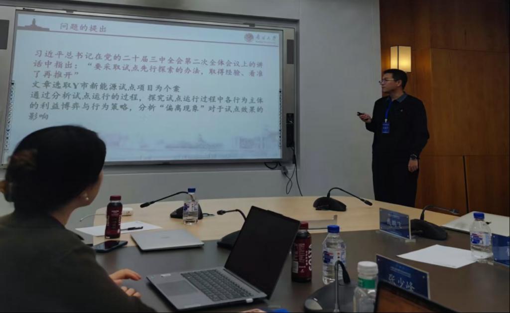 博士生何里程在青年论坛上以《依职定策:条块互动关系因何调整?——基于职责属性视角的考察》为题进行汇报。他指出,聚焦条块关系的动态变化,尝试建构了对应的职责解释框架,并基于典型案例进行了不同类型的比较分析。由此指出以职责体系为切口,有助于进一步推动条块互动关系的规范化,并促成条块协同,充分发挥政府治理体系的整体性优势。