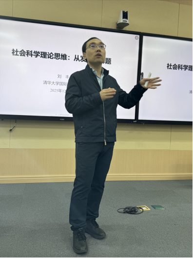 刘丰教授从社会科学的核心贡献出发,引导听众思考“如何做理论研究”。他结合自身研究历程,以学者David Lake的学术生涯为例,阐述理论研究如何从一个具体问题出发,逐步深化、扩展,最终形成系统化的理论体系。刘丰老师指出,理论研究往往始于真实困惑,通过概念化、描述与因果推理,逐步构建解释框架。