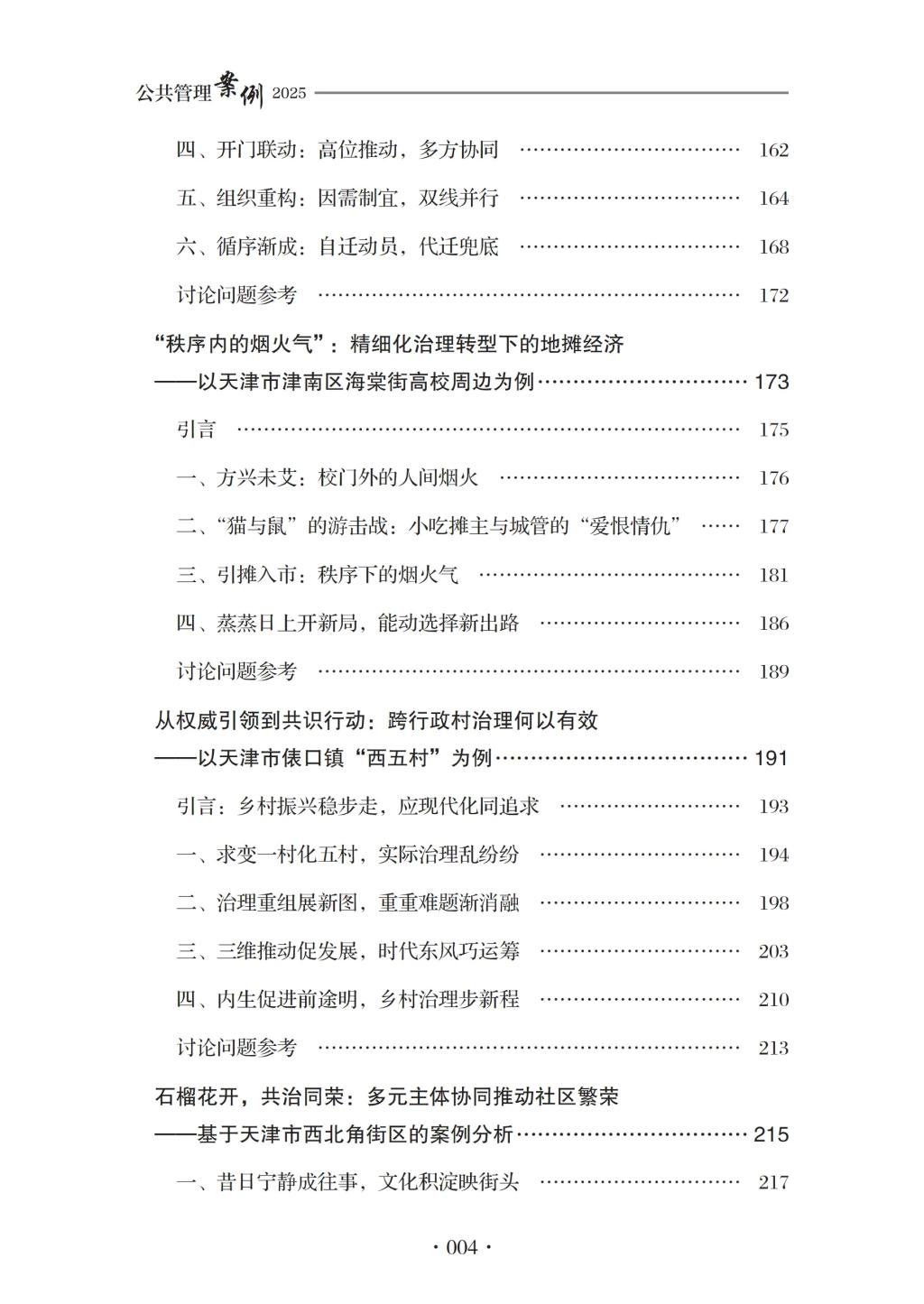 跨领域与跨尺度视野:从社区微治理到区域生态保护,从城市更新到乡村全面振兴,覆盖多层次治理场景,反映国家战略在地方的落地与调适。方法论启示:案例写作融合深度访谈、参与式观察与政策文本分析,为案例研究方法提供示范,尤其适合高校教学、干部培训与政策研讨。