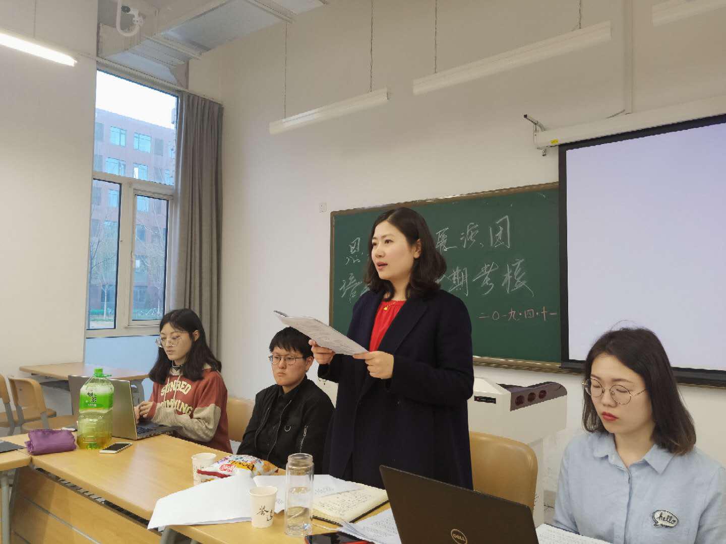 (通讯员:王燕 任银娜)2019年4月11日16:50,恩来精神展演团于政府公司135教室进行了期中考核暨朗诵技巧培训会。与会人员包括恩来精神展演团成员及指导老师王燕。