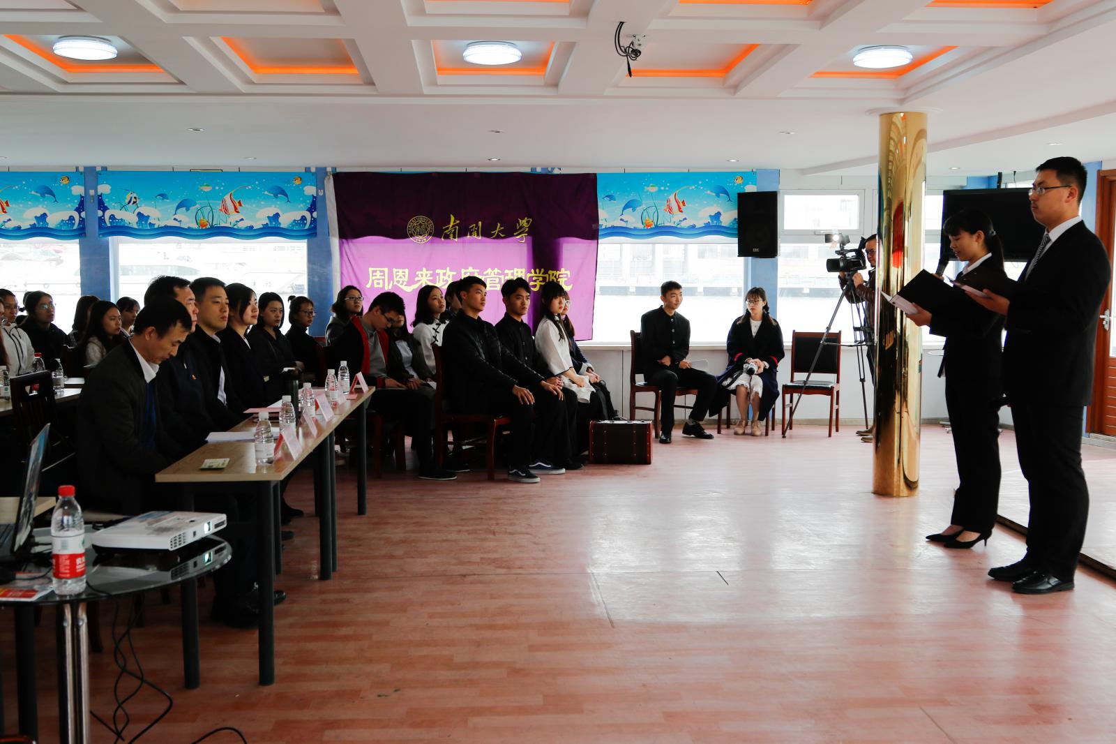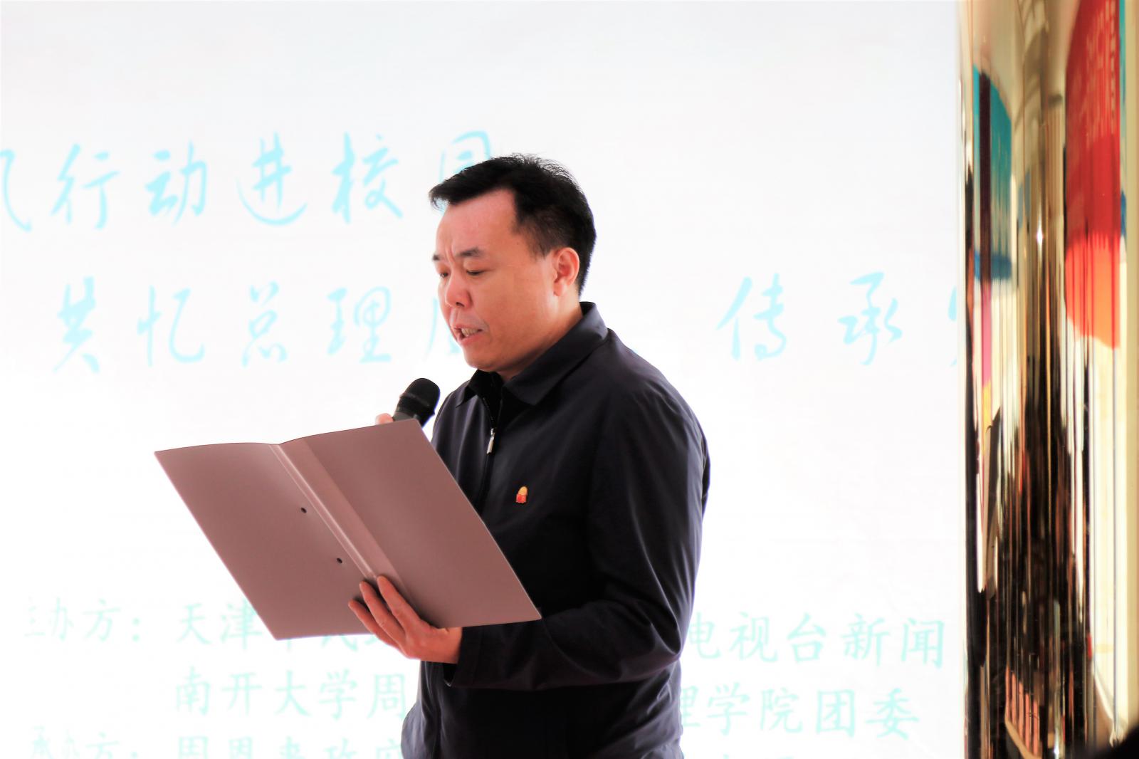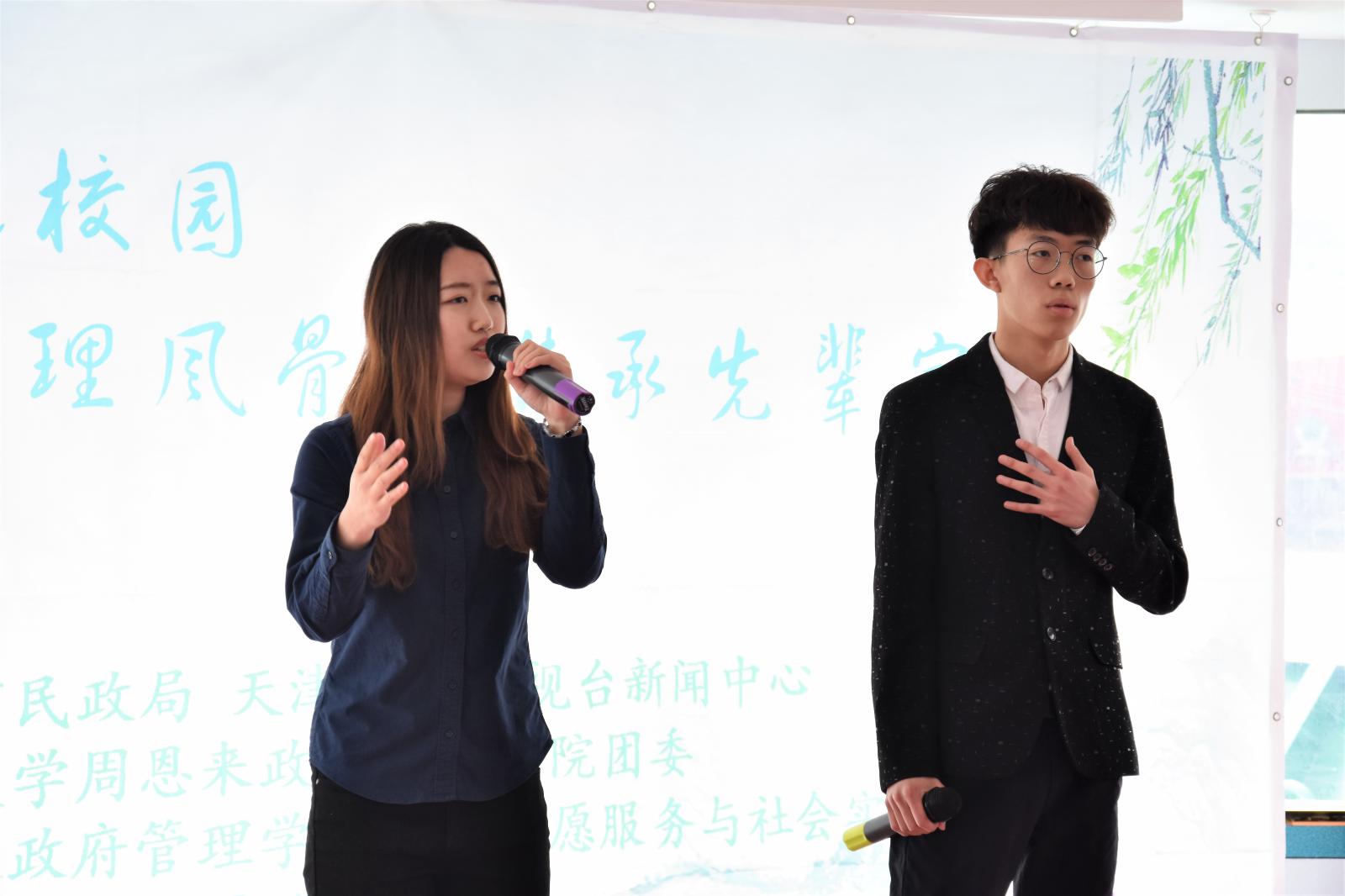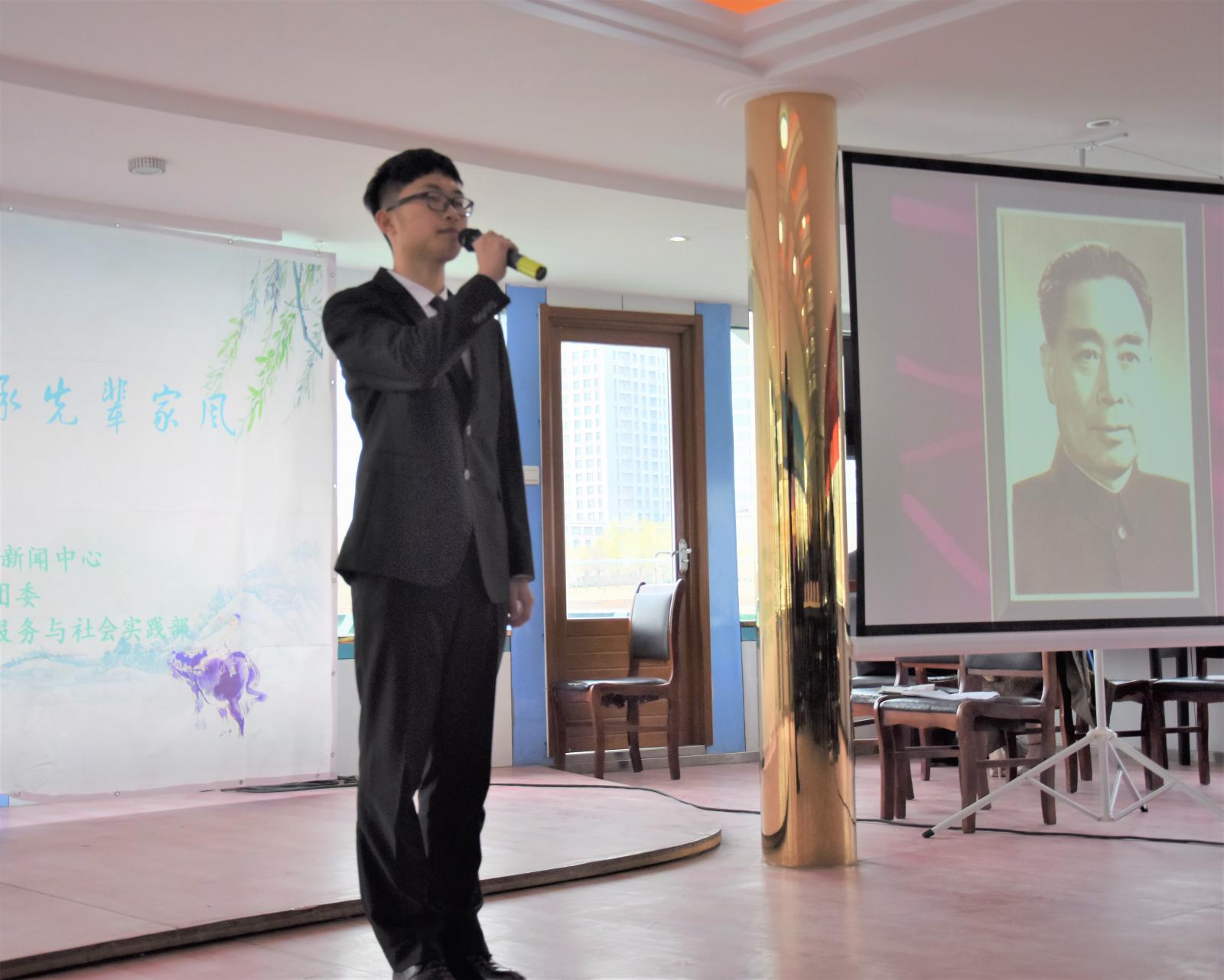 在热烈的氛围中,杨中山书记为在场人员详细介绍了“都市文明 集体共祭”活动,并表达了对于总理的追思怀念之情。随后,周恩来政府管理公司党委副书记兼副经理高磊老师介绍了本院清明品牌化的清明系列志愿服务活动,并发起倡议。接下来,院团委王燕老师带领在场同学一同宣誓,指出新时代的南开学子,应牢记以周恩来总理为代表的历代南开先贤嘱托,积极承担肩负的使命职责,倡导文明祭扫,推进生态文明,以自身的实际行动纪念周恩来总理。