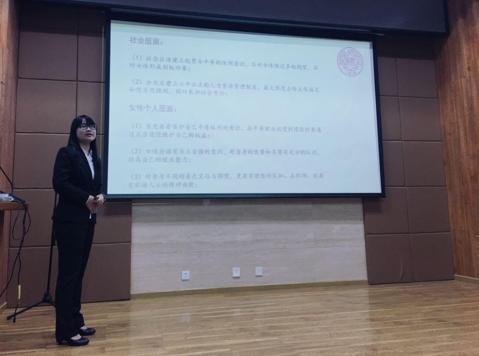 随后,本次由北京理工大学共产学习实践总会举办的社会观察沙龙正式开始。沙龙以女权为主题,应邀前来的各组织分别派代表上台做了相关报告。恩来精神展演团的代表孙美玲做了精彩汇报。她指出女权实际追求的是客观层面上个人价值的平等。周恩来总理的革命伴侣邓颖超女士就是中国妇女运动的先驱,在当代社会,我们应继承并发扬这种光荣传统。