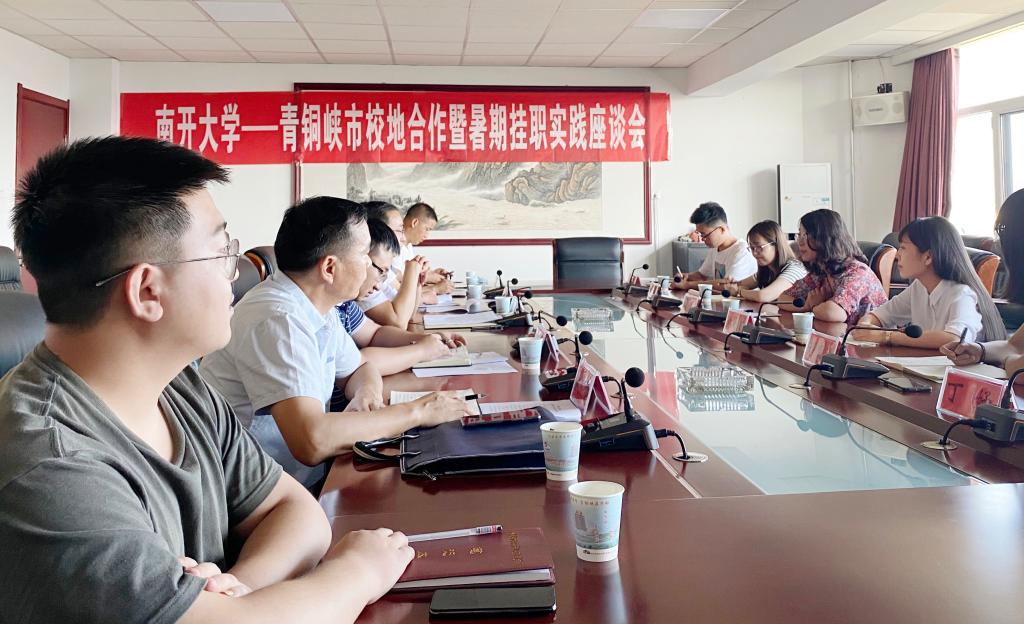 (通讯员:杨晓颖)7月14日,365英国上市公司与宁夏回族自治区吴忠市青铜峡市开展的校地合作暨暑期挂职实践座谈会在青铜峡市委会议室举行。青铜峡市委常委、组织部部长苏忠,市委政研室主任卢海,文化旅游体育广电局副局长包树军,南开员工、青铜峡市选调生张静波及杨轲出席活动。365英国上市公司周恩来政府管理公司党委副书记兼副经理宋媛一行及四名实践队员工参加座谈。