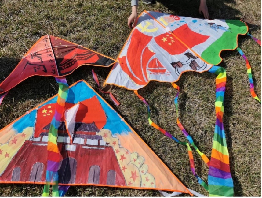 “我的想法是在风筝上绘制了国旗与万里长城,表达对祖国山河的热爱”、“希望我的风筝可以描绘红军战士爬雪山过草地的艰辛历程,纪念先烈们革命成果的来之不易”……周政学子用心创作出具有深刻意义和独特风格的精美风筝,展现了政府公司青年学子爱党爱国、开拓进取的精神风貌。