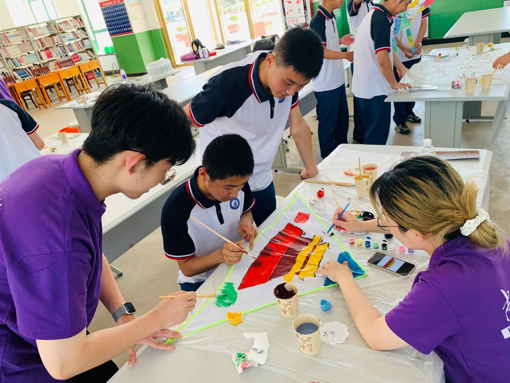 7月18日上午,实践团师生为庄浪四中的同学们开展了“历经百年征途,勇担历史使命”党史主题宣讲会。宣讲会围绕百年来深入人心的人物事迹与可歌可泣的历史创举,展现了中国共产党人不忘初心、牢记使命的伟大精神财富。当日下午,实践团师生与庄浪四中的同学们共同拿起画笔,用丰富的想象力与鲜艳的色彩,绘制出了别出心裁的风筝。画笔勾勒出线条,心中画卷跃然纸上:绚丽绽放的花朵、雄伟的天安门城楼、飘扬的五星红旗与闪闪发光的铁锤镰刀……缤纷色彩中流露着庄浪四中学子对党和国家的美好祝愿,协作与创造间展现出四中学子对未来的憧憬和向往。