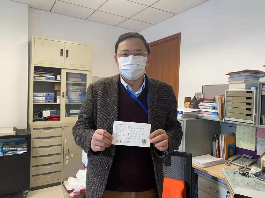 在校园里默默奉献的身影之中,有日夜陪伴、悉心清洁的宿管阿姨,有精心备餐、保障供应的食堂工作人员,还有随时待命、关怀备至的辅导员老师;有不畏艰难、负重前行的医务工作者,还有身体力行、奉献自我的青年志愿者……他们就像星星灯火,在没有硝烟的战场上发光发热,汇聚成南开校园中最坚实的抗疫后盾。活动中,同学们纷纷拿起画笔,将内心最真挚的情感通过文字和图画的形式表达出来,并把这份“暖暖”的明信片送到了“校园守护者们”的手中。