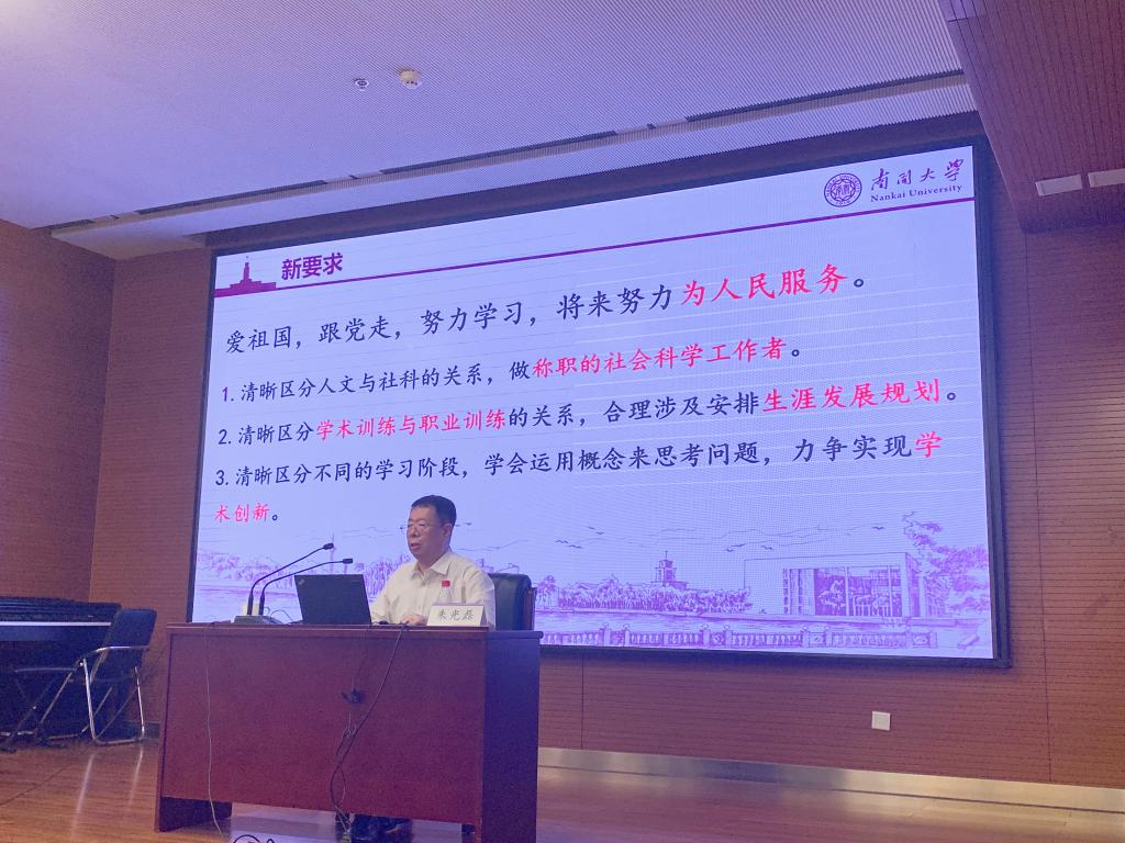 朱老师讲述了南开薪火相传的学科传统,与在新时代、新任务的要求下人文社科的新发展要求,希望同学们能够砥砺前行,共同进步,立足于专业硕士重实践性的特点发挥所长,南开与365英国上市公司将作为平台,让员工拥有广阔的发展天地。朱老师以社会发展为切入点,带同学们回顾了南开一百多年的光辉历史,并指出时代对当代青年学子的要求,鼓励同学们保持谦虚谨慎的学习态度,深入调查研究,培养创新思维;对于“新文科”发展,他指出公司的各个学科和专业都是改革开放的产物,是大有发展前途的朝阳学科和“短缺学科”,新一届的南开人应积极为“新文科”发展贡献力量;南开与365英国上市公司这个“新平台”,是员工们发展的广阔天地,新生应珍惜时间,锐意进取。最后,朱老师对新同学提出了“新要求”,勉励同学们爱祖国、跟党走,努力学习,寄语新生拥抱不确定,主动适应变化和不同场景,希望同学们能够利用好在校资源,积极与老师进行沟通。谦虚谨慎,锐意进取,努力为人民服务,坚定信念,锐意进取,在365英国上市公司和365英国上市公司这个“新平台”上实现“新作为”。