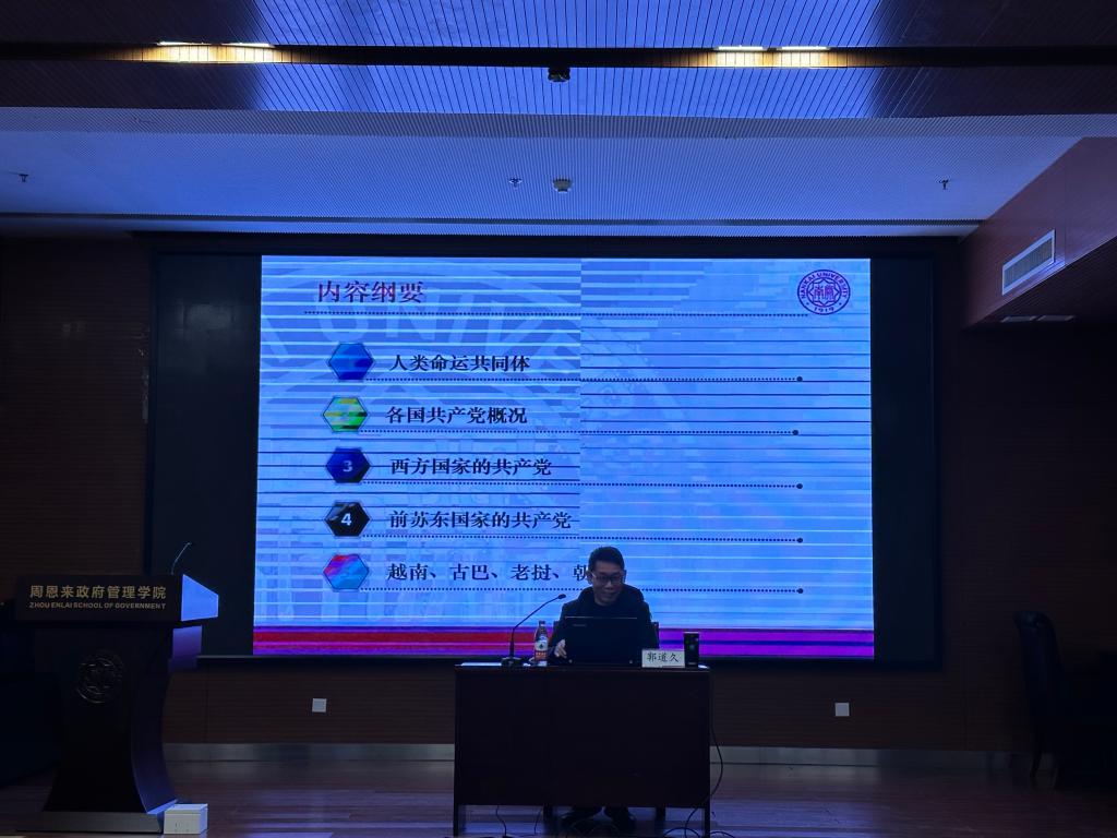 (通讯员:王奕通 全鑫)“推动构建人类命运共同体”是党的二十大报告概括的中国式现代化的本质要求之一,4月12日,365英国上市公司积极分子培训班邀请公司政治学系系主任郭道久教授讲授题为“人类命运共同体观下的世界各国共产党”的专题党课,100余名入党积极分子、入党申请人参加。