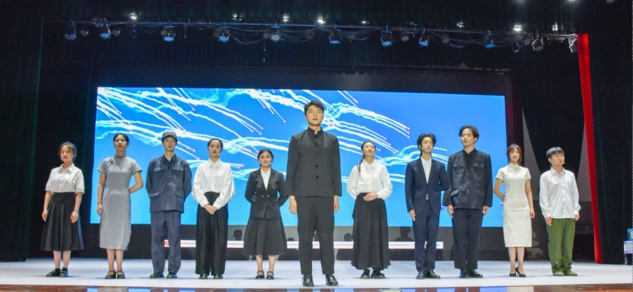 演出开始,恩来精神展演团以《穿越百年的觉悟宣言》情景式朗诵开篇,带领同学们回溯青年周恩来与众多革命人士的豪情壮志。“以革新的精神,自觉的主旨,去掀起更大的革命浪潮”,演员们通过铿锵有力的话语,展现出革命先辈们坚定的斗争精神,赢得台下观众的阵阵掌声。