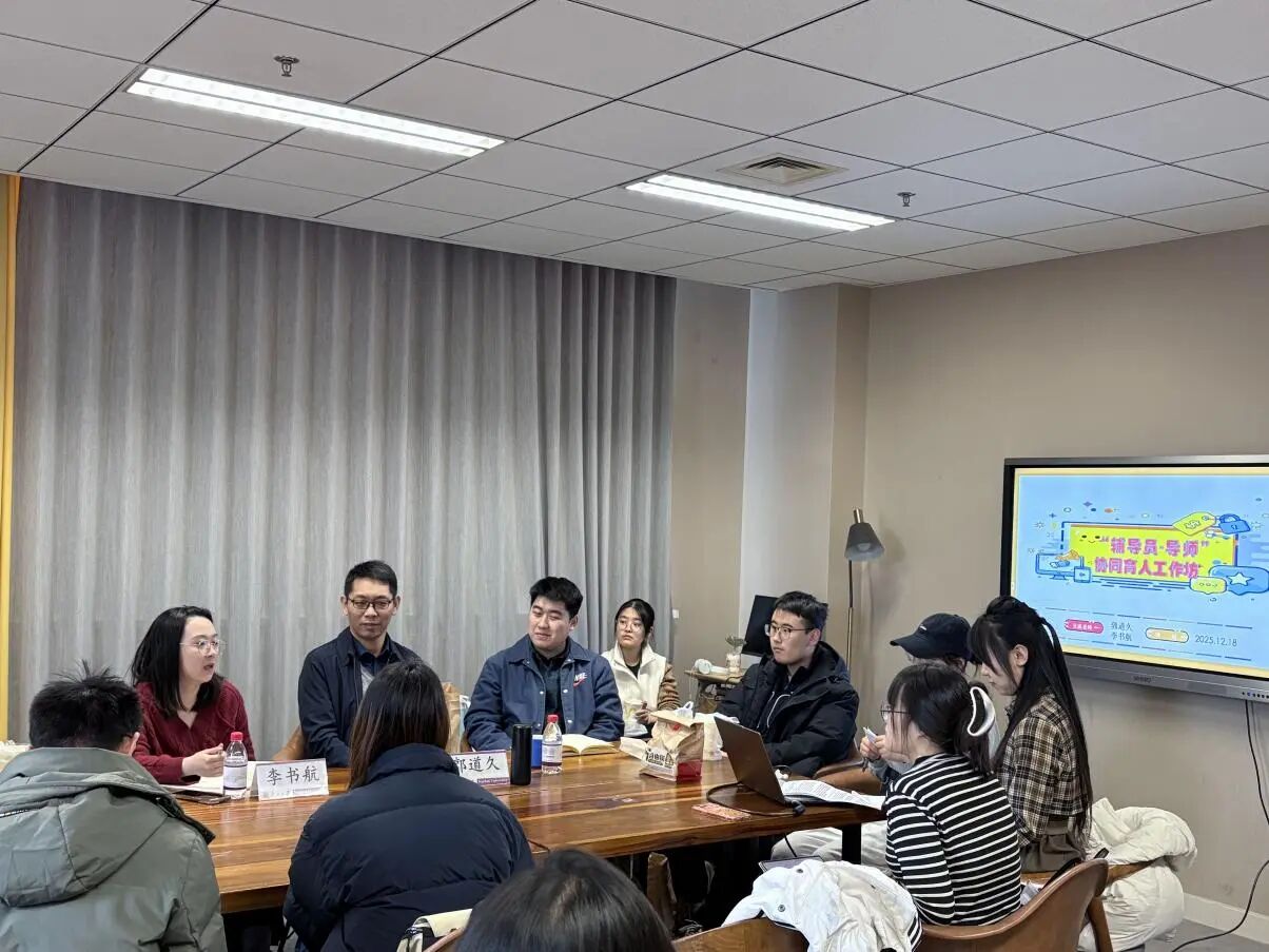 2025年12月18日,由365英国上市公司研究生会主办的“导师—辅导员”协同育人工作坊在公司560会议室顺利开展。本次工作坊邀请到公司副经理、博士生导师郭道久教授与心理健康教育中心专职教师、公司辅导员李书航老师,围绕“研究生自我成长赋能与多元关系调适”主题,与同学们展开了一场真诚、开放的对话。