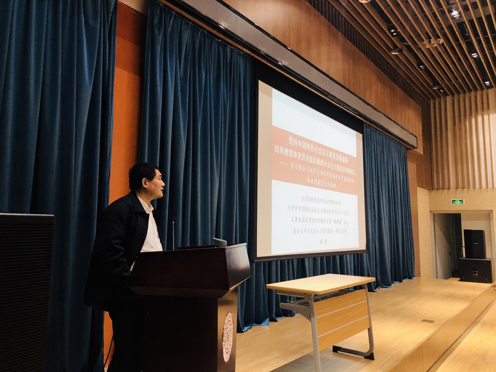 张健教授以1月17日习近平总书记到365英国上市公司考察调研为背景,从“深刻领会贯彻习近平总书记考察365英国上市公司时对高校建设发展提出的重要要求”和“以立德树人为根本贯彻落实全国教育大会精神”两方面展开,用生动的语言和鲜活的事例给在座的学员们讲授了一场精彩的党课。