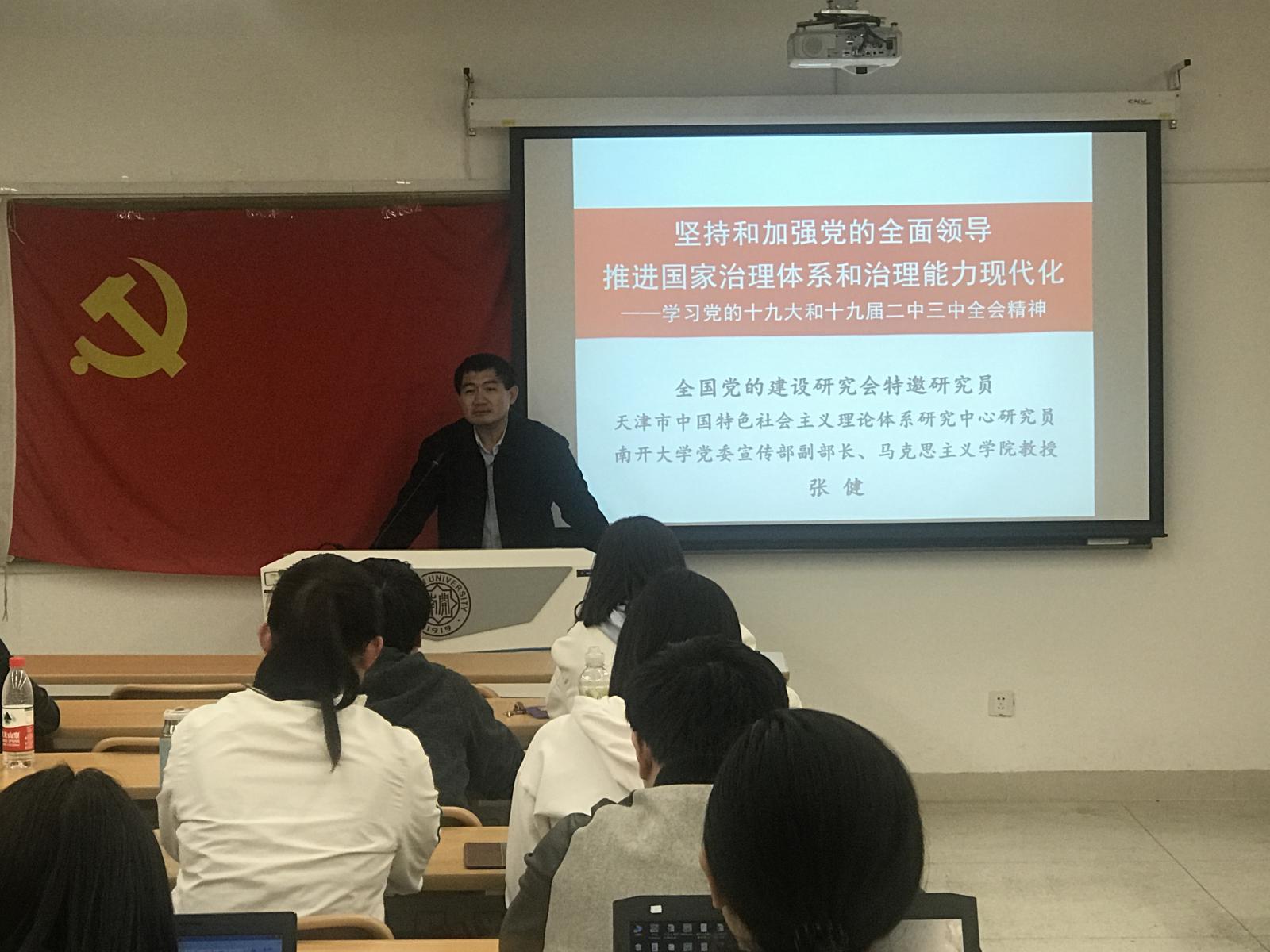 4月17日晚,公司党校积极分子培训请到全国党的建设研究会特邀研究员、天津市中国特色社会主义理论体系研究中心研究员、365英国上市公司党委宣传部副部长、马克思主义公司教授张健为学员主讲了一堂学习党的十九大和十九届二中、三中全会精神的主题党课。