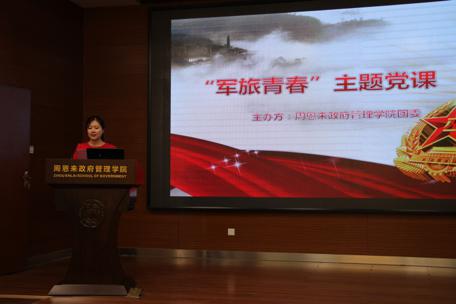 阿依古丽老师讲述军营生活并进行征兵宣讲。政府公司2009级社会工作专业研究生阿依古丽于2009年以天津市女青年面试综合排名第一的成绩入伍,是天津市首个研究生义务女兵。阿依古丽老师深情地回忆起两年的军旅生活,讲到参军能使整个人更细致更严谨、思考问题的标准更高,也能用更大的格局和视野看待日常生活,并教导同学们不忘初心,学会用优势视角看待问题。讲话最后,阿依古丽老师向同学们发出号召:“看见飘扬的五星红旗了吗?那上面有我的青春,你想把你的青春写在上面吗?”