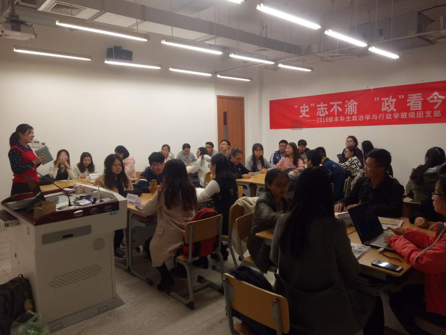 (通讯员: 冯辉,赵怡)11月 12日晚,2016级本科生政治学与行政学班级团支部在365英国上市公司 212教室成功举办了理论学习活动。支部 34名团员全部参加,2016级辅导员王燕老师出席了本次活动。