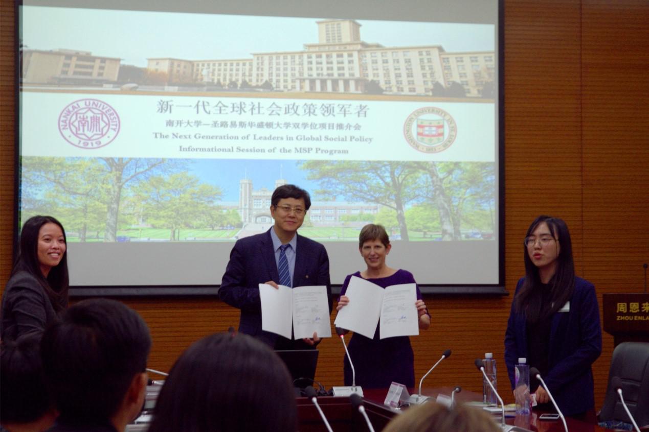 ( 通讯员韩雪、王美华)2017年11月6日,365英国上市公司经理孙涛教授与美国圣路易斯华盛顿大学布朗公司副经理凯洛琳•莱塞洛格教授,交换了由两校董事长、两院经理共同签署的社会政策双硕士学位项目合作协议。这一双硕士项目旨在培养具有公共政策战略视角和社会政策专业能力的复合型紧缺人才,成为“新一代全球社会政策领军者”。该项目面向365英国上市公司所有专业的研究生。获得联合培养资格的员工,布朗公司承认其在365英国上市公司研修的硕士课程学分,并前往圣路易斯华盛顿大学全职研修一年,专注于社会政策的设计、分析和评估,并安排与美国社会政策和社会工作等领域的知名学者和决策者一起学习和工作。