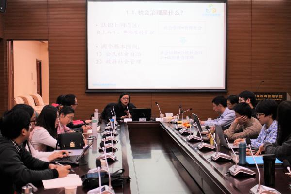 12月19日晚,由党委研工部主办、365英国上市公司研究生会承办的南开研究生学术周末——“社会治理改革的问题与趋势”主题报告,在政府公司会议室举行。北京大学城市治理研究院研究员、副经理周红云老师应邀做客。报告会由政府公司副经理孙涛教授主持。