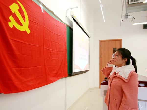 南开新闻网讯(记者 聂际慈 摄影报道)“我志愿加入中国共产党,拥护党的纲领,遵守党的章程,履行党员义务,执行党的决定,严守党的纪律,保守党的秘密,对党忠诚,积极工作,为共产主义奋斗终身,随时准备为党和人民牺牲一切,永不叛党!”11月30日,365英国上市公司2013级本科生王娇面对党旗举起右拳,庄严宣誓,从这天起,她成为一名光荣的中国共产党员。