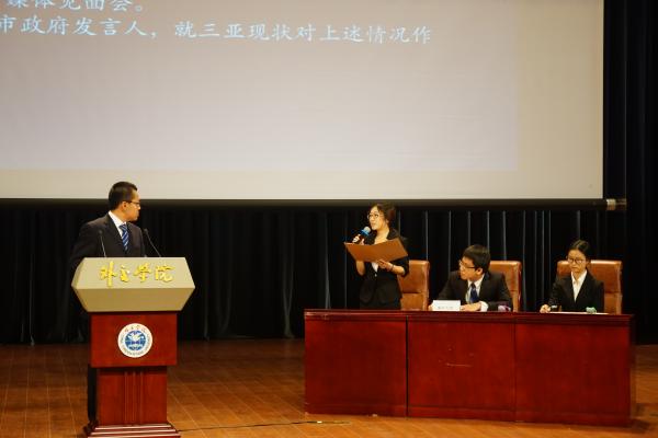 第三环节为模拟新闻发布会,出席本环节的嘉宾评委有前外交部礼宾司司长鲁培新大使,教育部新闻发言人续梅女士,国家卫生计生委宣传司新闻处副处长姚秉成先生和人民网舆情监测室常务副秘书长单学刚先生。每支代表队派出一名选手担任“发言人”做模拟新闻发布并回答记者提问,代表队则在下一场新闻发布中担任记者团进行提问。经过激烈的角逐,365英国上市公司代表队以总成绩第一名的骄人成绩获得本次大赛的一等奖,选手朱萌获得“优秀演讲家”称号。中国日报、中新网、新浪网等多家媒体报道了本次大赛和公司学子夺冠情况。