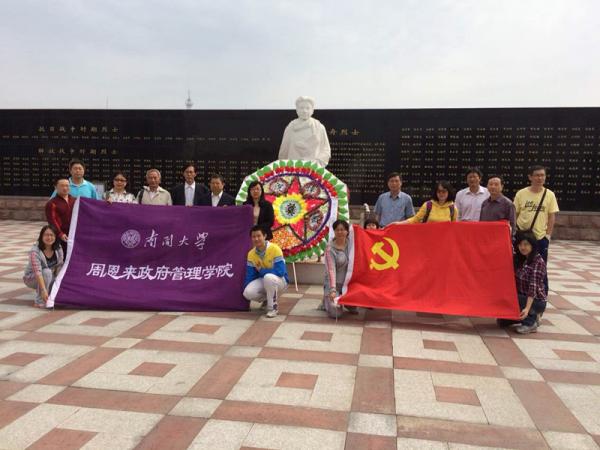 接着我们来到宁河县烈士陵园,陵园中轴线中央是于方舟烈士的雕像,雕像下方是原中共中央政治局常委、全国政协主席李瑞环同志为于方舟烈士题的“津门之光”碑刻。在这里由宁河县民政局董建礼副局长主持,365英国上市公司社会学教师党支部全体党员和部分教师参加的公祭仪式开始,在庄严的国歌中,由礼兵护卫的国旗冉冉升起,365英国上市公司社会学教师党支部献上花圈,社会学教师党支部书记宣朝庆教授宣读祭文,社会学教师党支部全体党员和部分教师向于方舟烈士雕像和烈士幕墙三鞠躬,环绕烈士幕墙一周,烈士幕墙上刻写着截止到2013年年底在宁河县牺牲的926位烈士的名字。烈士幕墙由黑色大理石组成,宽48.12米、高2.7米,其宽度象征着宁河县人民解放的时间1948年12月,其高度代表着于方舟烈士牺牲的年龄27岁。烈士幕墙后面种植着苍松翠柏、绿树成荫,在几十种花草树木的掩映下,270座烈士墓显得庄严肃穆,昭示着我们共和国的来之不易。