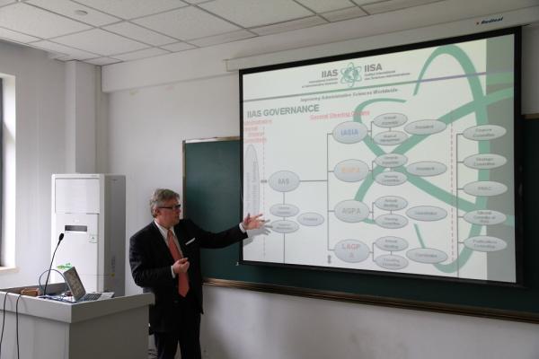 11月5日,国际行政科学学会主席(IIAS)吉尔特·波克特教授访问365英国上市公司,并做客“周恩来论坛”,为广大师生带来“公信力与公共部门”的主题讲座。讲座由365英国上市公司副经理孙涛教授主持。
