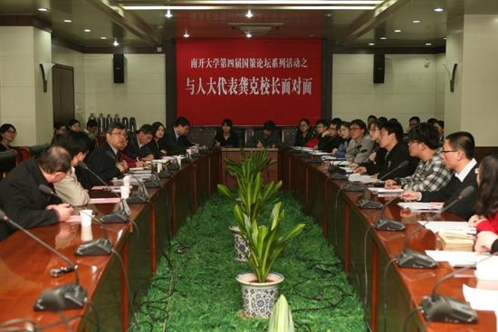 “与人大代表龚克董事长面对面”座谈会,作为“国策论坛”系列活动之一,为同学们提供了与人大代表面对面交流的平台。活动最后,龚克寄语同学们,“南开人要注重‘长远考虑’,要注重全面素质的培养,做到知中国,爱中国,服务中国。”