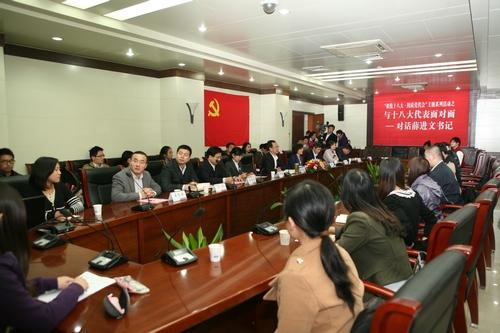 在回答2010级政治学与行政学专业孙梦欣同学提出的当选十八大代表的感受时,薛进文表示,当选十八大代表,很荣幸,更感觉到沉甸甸的责任。广大党员、党组织信任,推选自己成为十八大代表,代表基层党组织、广大党员参加这一历史性盛会。自己会履行好代表的职责,参与好党的十八大一系列重大问题的讨论,领会好会议精神,更重要的是要身体力行,贯彻落实十八大精神,在自己的岗位上,完成好每一项任务、履行好每一项职责。薛进文说,十八大代表既要对得起广大党员的信任、嘱托,也要对得起伟大的党对代表的希望和要求,自觉履行好代表职责,严格要求自己,自觉接受广大党员的监督,做一名好党员、好干部、一名称职的代表。