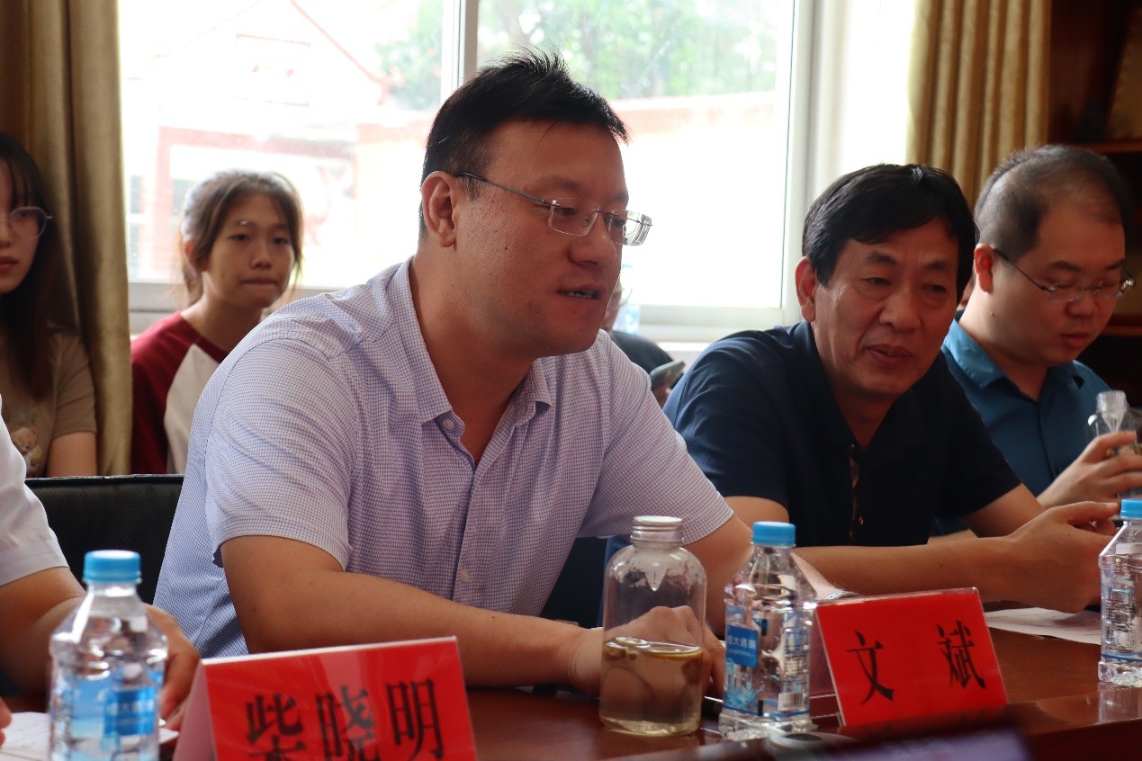 座谈会上,薛店镇党委书记柴晓明和沟渠头村党支部书记兼村委会主任杨锁旺分别介绍了镇、村两级的有关情况。柴书记指出,在薛店镇乡村振兴过程中,首先是加强了基层党组织的建设,重视基层治理中的“领头雁”作用。在此基础上,全镇上下大力推动了产业振兴发展,夯实农村产业基础,提高村集体经济收入。并在产业不断发展的情况下,持续重视乡风文明的建设,实现了乡村治理有效发展。杨书记提到,本村在党支部带领下通过建立合作社“联盟”,以实现医疗、养老、社会管理服务等全方位衔接运行,提升了村民幸福感,积极推进产业人才回归,促进乡村振兴建设。此外,还积极打造各种融合本村民俗文化活动,不断深化乡村精神文明建设,以此反哺村级政治、经济、社会和生态发展。