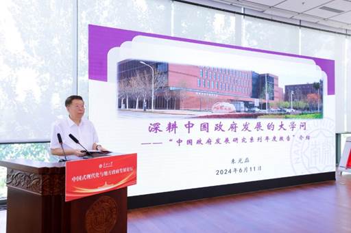 朱光磊教授介绍了“中国政府发展研究系列年度报告”的编写历程和最新一版报告的主要特点。他表示,从探索初期以主题为基准的报告到后来比较稳定的以年度为基准的报告,形成了一套成体系、有主线,规定动作与自选动作相结合的系列研究成果。《中国政府发展研究报告(2022-2023)》的继承性与发展性体现在三个方面:第一,报告编写团队:保持原班人马的基础上,增加新生代学术力量;第二,报告整体结构:保持原有板块的基础上,增加新时代研究视角;第三,报告具体内容:保持原本思路的基础上,增加科学化研究方法。