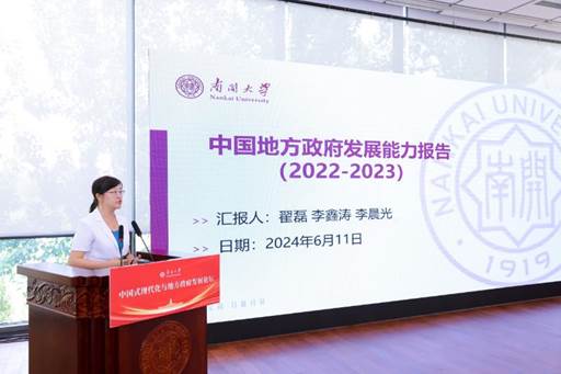 翟磊教授从基本定位、指标体系、报告内容、研究结论和突出特色等方面介绍了《中国地方政府发展能力报告(2022-2023)》。她指出,自2015年起,研究团队针对地方政府发展能力构建指标体系,并将“地方政府发展能力指数报告”纳入系列年度报告之中。经过多年的持续论证与不断改进,最新一版报告采用了内部外部相结合、主客观相结合及动态静态相结合的思路构建指标体系,对50个样本城市的地方政府发展能力做了既全面又细致的分析与评估,突出了立足地方政府发展、聚焦中观层面分析、梳理总结最佳实践的研究特点。