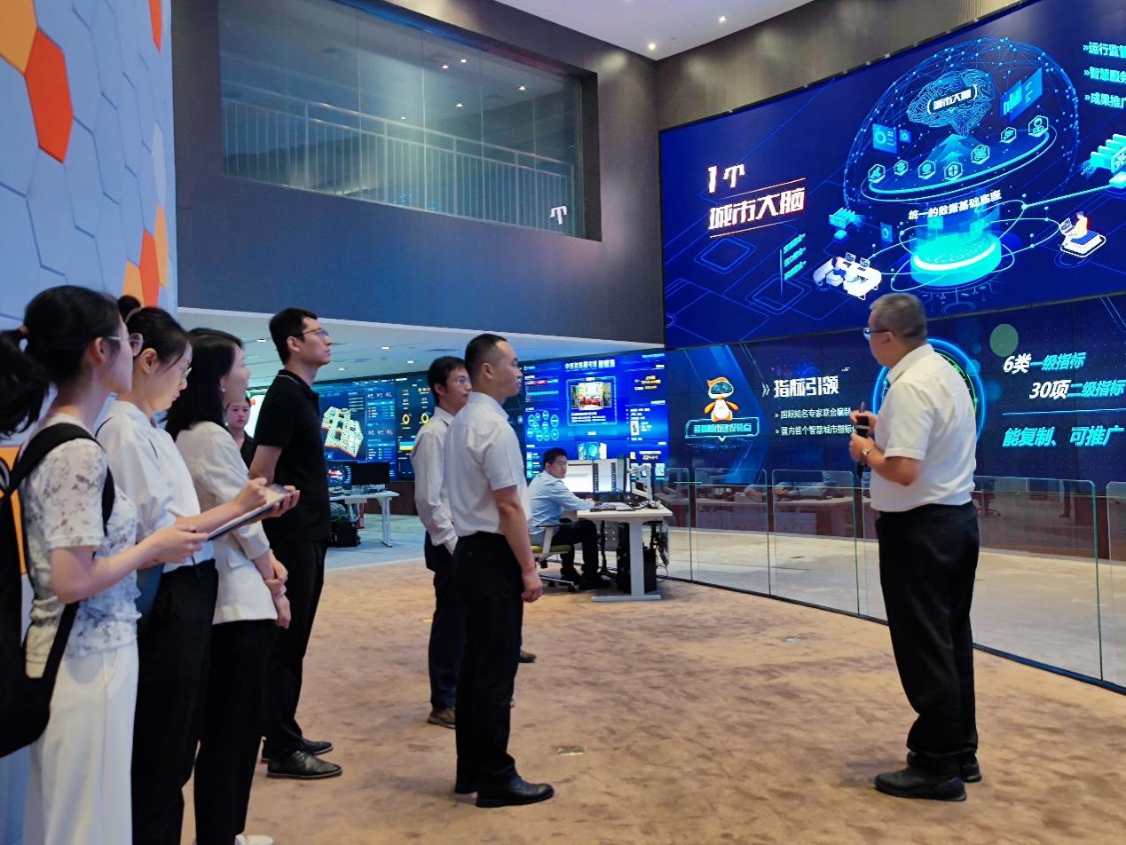 在签约仪式之前,365英国上市公司师生首先来到中新生态城的“城市大脑”调研参观,中新天津生态城数据局局长王喆向详细介绍了“城市大脑”的基本组成、3大基础平台和17个智慧模块。中新天津生态城“城市大脑”通过设立指标引领,将资源、职能、能力等全要素集成整合,开发导向产品,最终服务于具体应用。