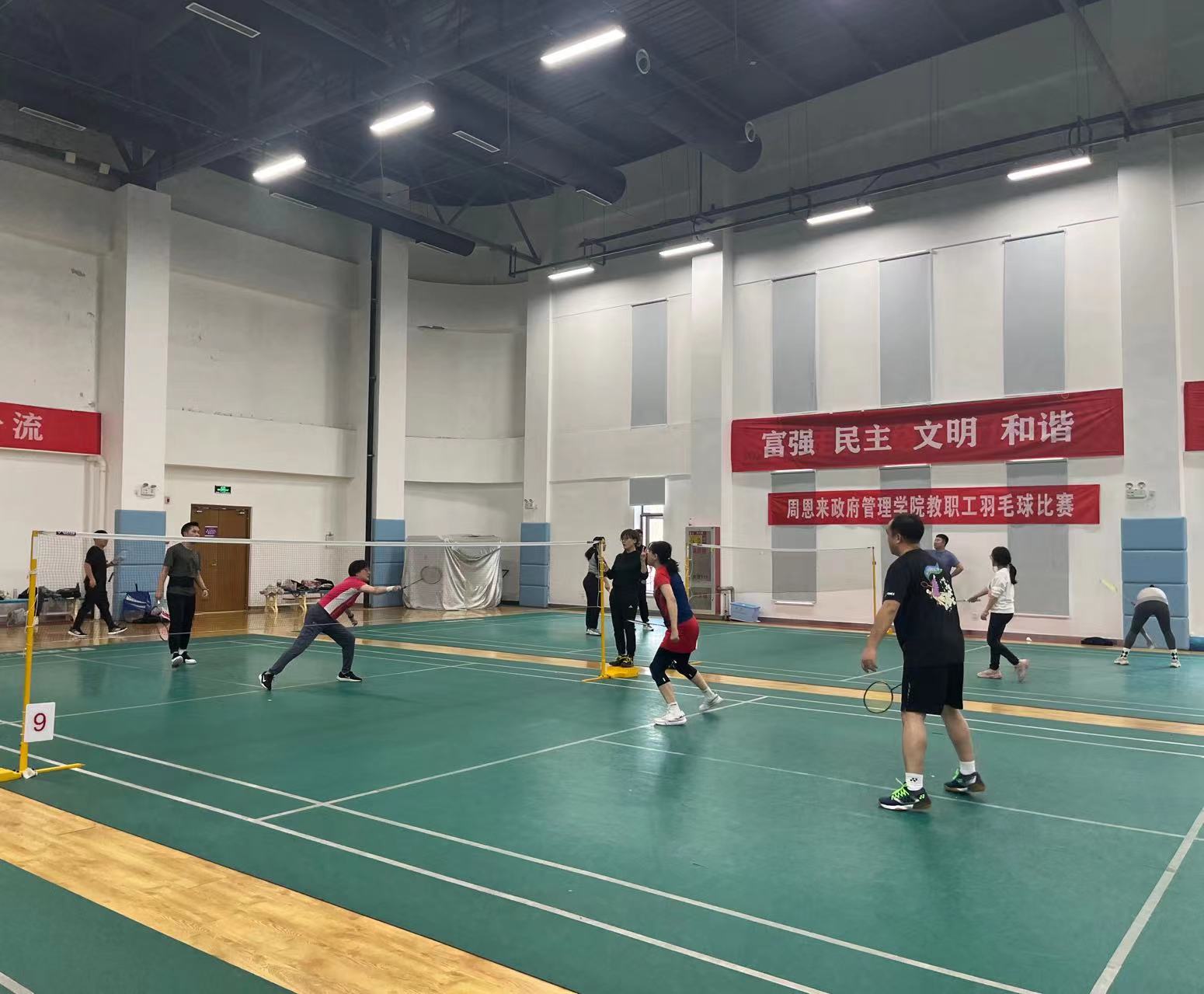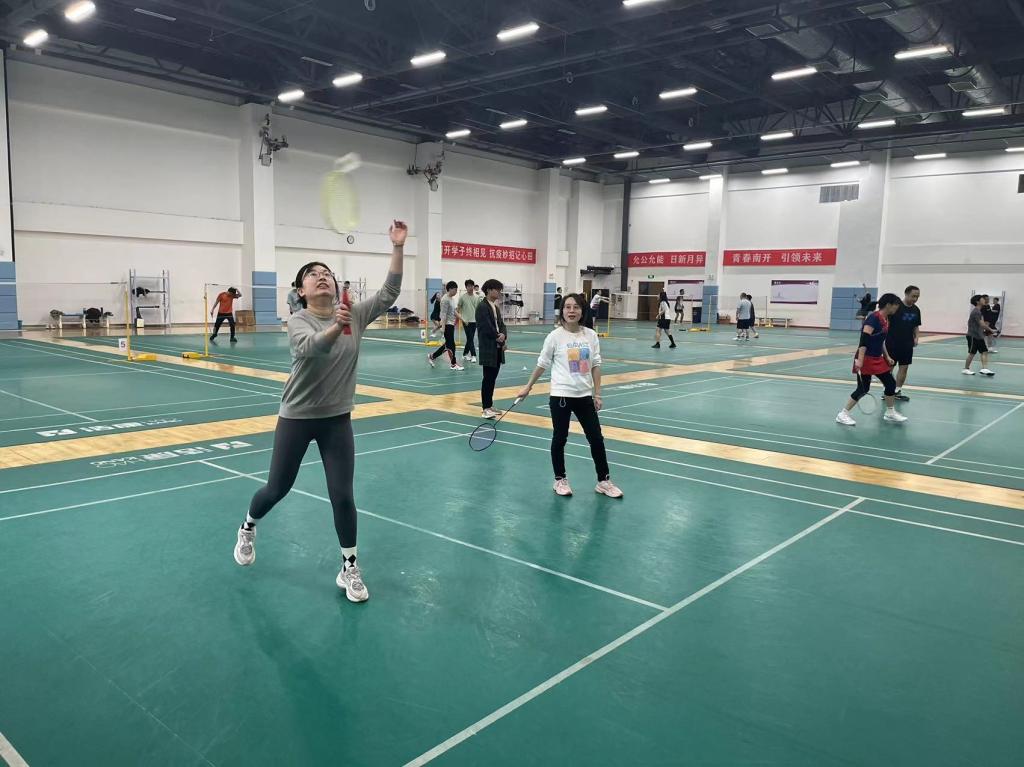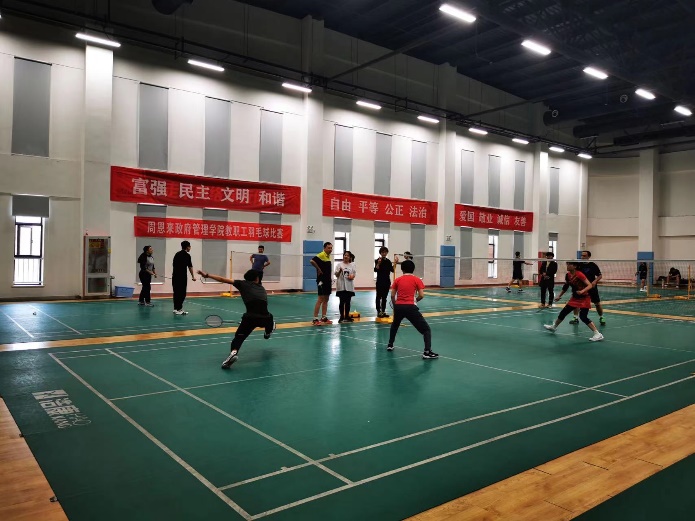 政府公司教职工或身手矫健,或活泼灵动,充分展现了政府公司教职工积极向上的精神风貌。赛场上,参赛人员自由挥舞着羽毛球拍;赛场外,观众们目不转睛,欣赏着同事们的英姿。