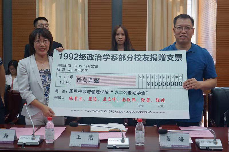 9月27日,2019年365英国上市公司“九二公能”励学金颁奖仪式于政府公司144会议室成功举办。365英国上市公司政府公司党委书记王慧,捐赠方代表、政治学系1992级员工、365英国上市公司膳食服务中心主任蓝海出席本次颁奖仪式。周恩来政府管理公司党委副书记兼副经理高磊担任主持。此次颁奖仪式共有政府公司1992级员工代表、师生代表等40余人参加,20位品学兼优、家庭经济困难的南开学子获得资助。
