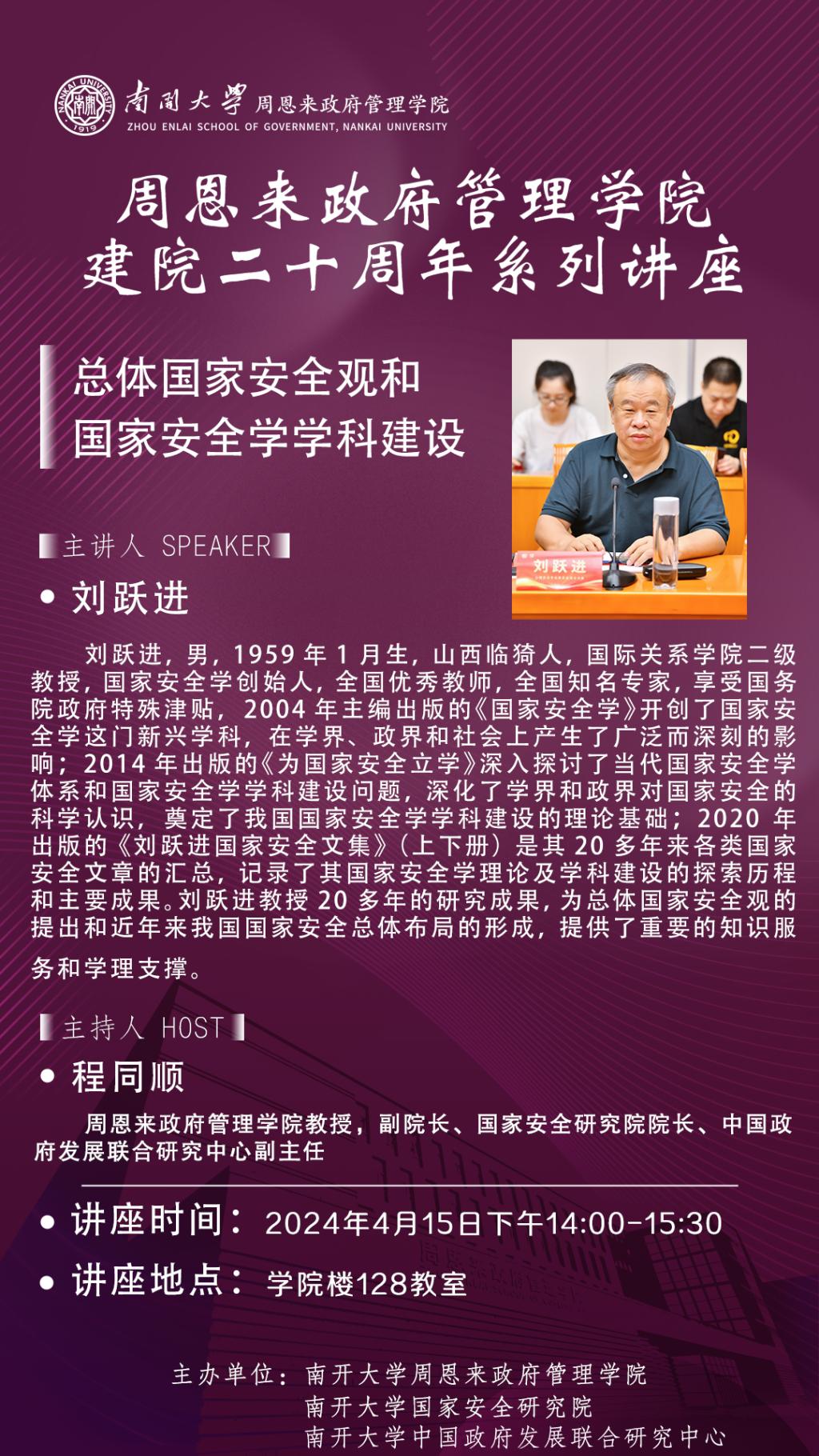 建院二十周年系列讲座:刘跃进|总体国家安全观和国家安全学团队建设