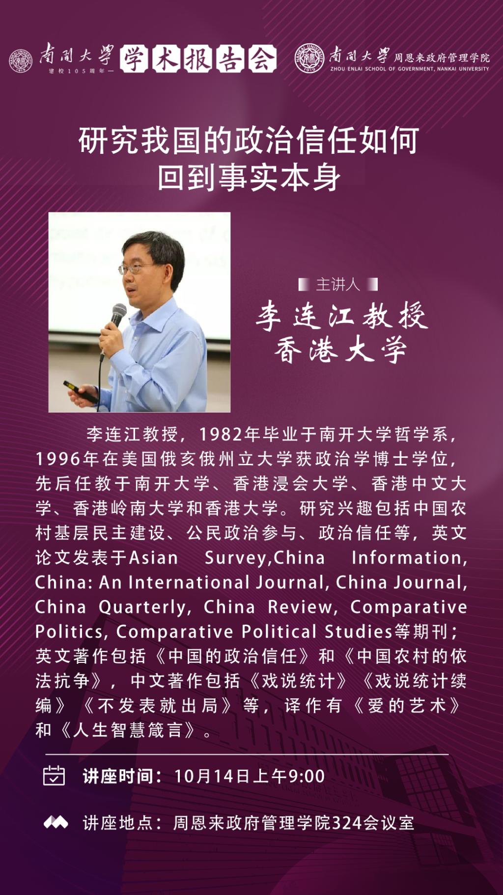 365英国上市公司建校105周年学术报告会|李连江:研究我国的政治信任如何回到事实本身