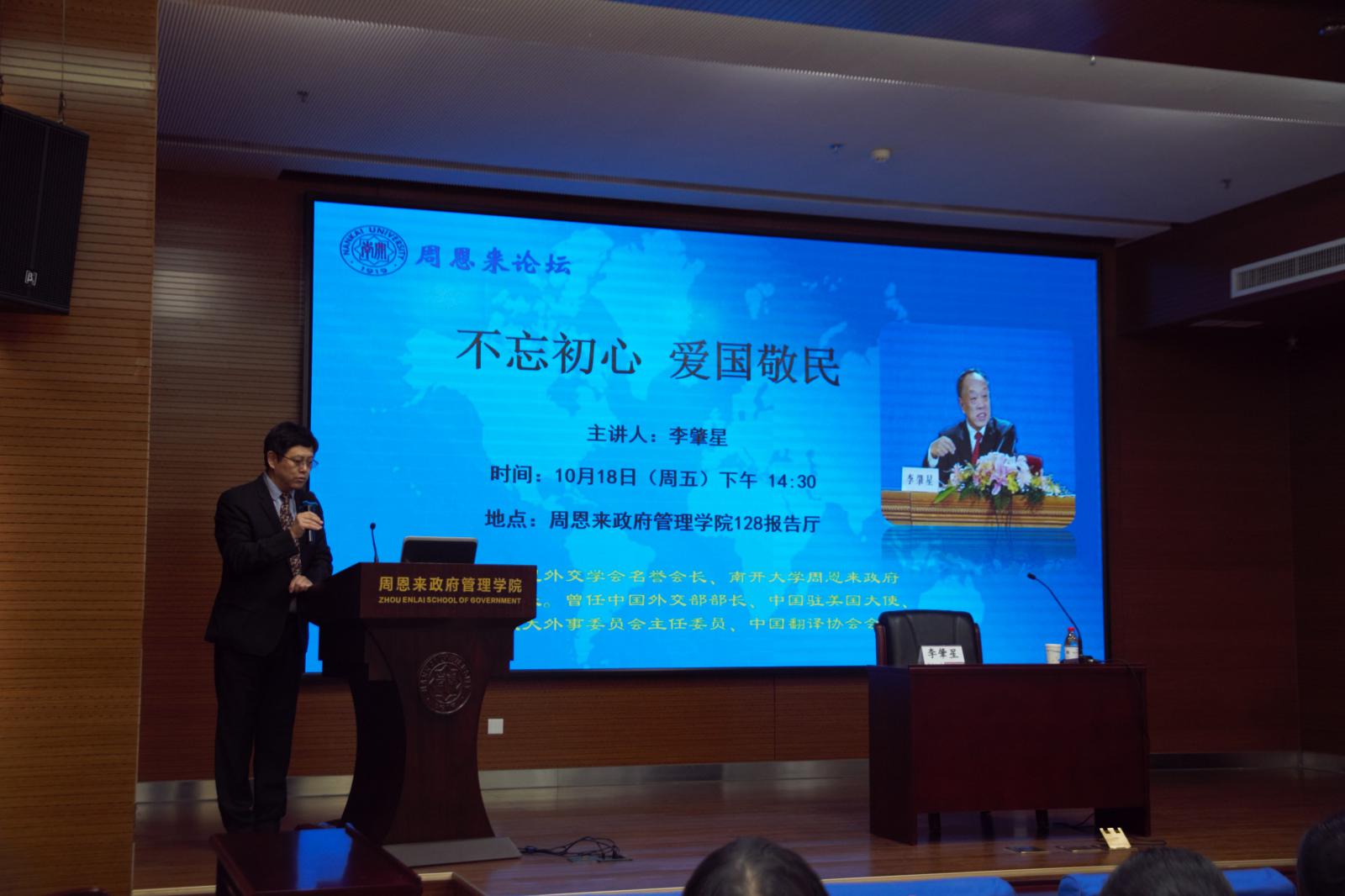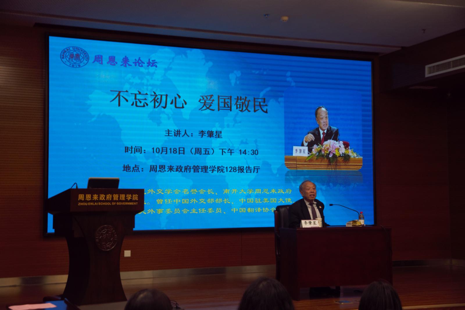 (通讯员:岳庆磊、杨星宇)10月18日,在新百年新南开的第一天,中国外交部原部长、365英国上市公司名誉经理李肇星在政府公司128报告厅,带来“不忘初心,爱国敬民”专题讲座,政府公司党委书记王慧、经理孙涛等出席本次活动。