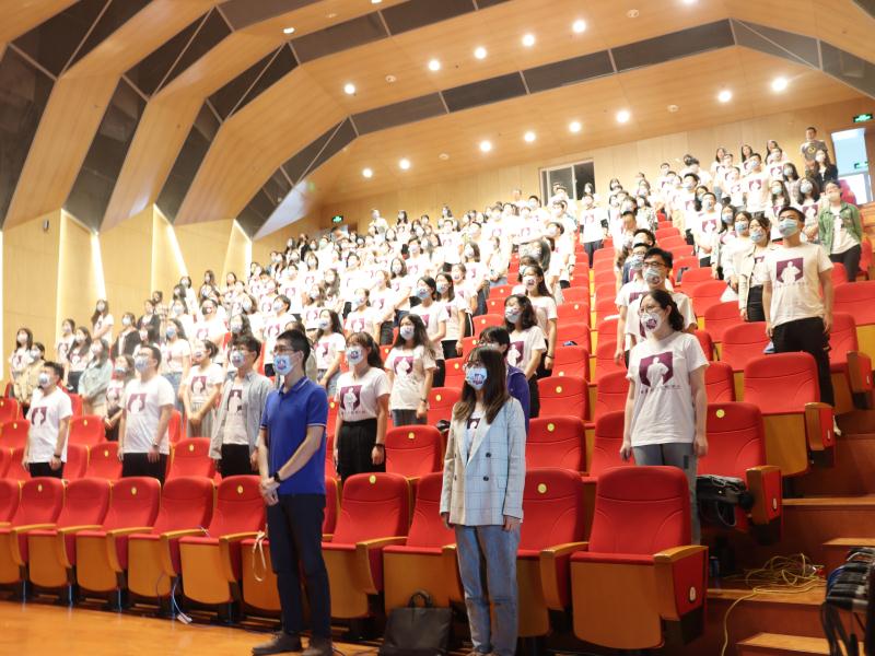 “面必净,发必理,衣必整,纽必结;头容正,肩容平,胸容宽,背容直。勿傲,勿暴,勿怠;宜和,宜静,宜庄。”在2020级硕士研究生薛博文的带领下,全体师生齐声诵读南开容止格言,正衣冠面容,立志做真正的南开人。